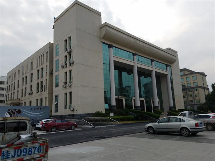 賀州傳媒中心大樓項目占地2800平方米。設地下室1層,地上為4層,總建筑面積為11370平方米,其中地上建筑面積為7210平方米,地下室建筑面積為4160平方米(可停車93輛),采用框架結構形式。多功能廳由于跨度較大,達到30.2米,其上空的頂層采用網架結構。地下停車場設兩個機動車出入口,分別位于建筑主入口的東西兩側,建筑內部設置四部樓梯。