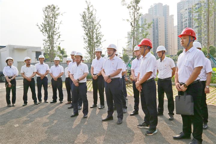 發(fā)布時間:2023-05-20 作者:圖文/吳姍 來源:本站原創(chuàng) 審核:鄧永劍5月19日,城投集團(tuán)聚焦“三個年”行動,圍繞主責(zé)主業(yè),創(chuàng)新黨委理論學(xué)習(xí)中心組學(xué)習(xí)模式,在項目地召開黨委理論中心組2023年第二次集中學(xué)習(xí)暨項目現(xiàn)場督辦會,將理論學(xué)習(xí)會搬進(jìn)項目建設(shè)地,打造“開放課堂”,既看“書面”更看“地面”,既學(xué)“理論”更重“實踐”,通過觀摩學(xué)習(xí),現(xiàn)場督辦鞭策,倒逼項目建設(shè)。